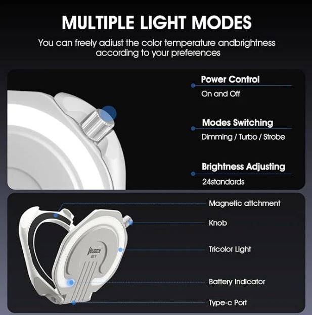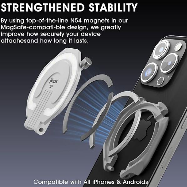 МАГНИТНЫЙ ДЕРЖАТЕЛЬ ДЛЯ ТЕЛЕФОНА : Используя новейшие магниты N54 в нашей конструкции, совместимой с MagSafe, мы значительно повышаем надёжность крепления и срок службы вашего устройства. Его можно не только закрепить на телефоне для создания заполняющего света, но и использовать в качестве подставки, которую можно регулировать под любым углом. Держатель легко устанавливается и снимается, а также надёжно фиксируется на любой металлической поверхности.
